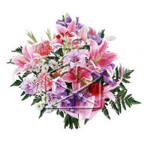 Beautiful Lilias arranged with carnations, roses and irises, look particularly good. So good, that You wish to give this arrangement to Your sweethart or other close to Your herar person. Send the flowers on a name-day. Let the flowers express Your emotions.